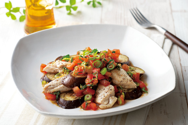 鶏肉となすのトマトねぎだれ